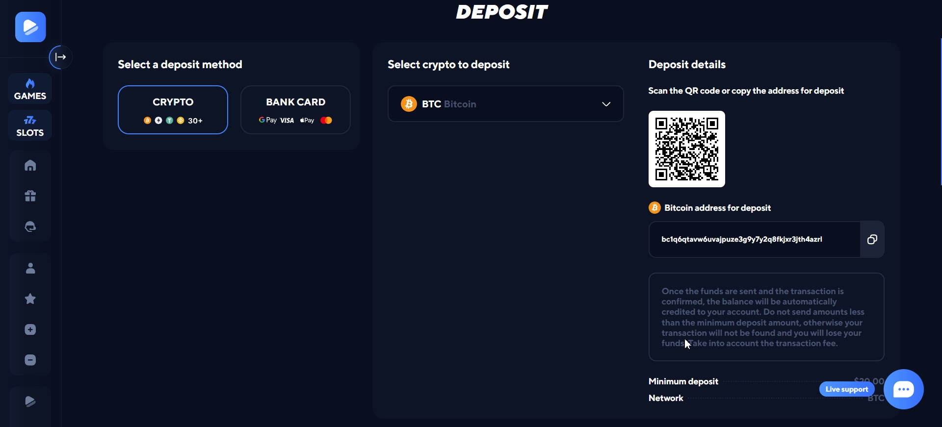 No native balance required on user wallet to withdraw (the fees are paid by team)
